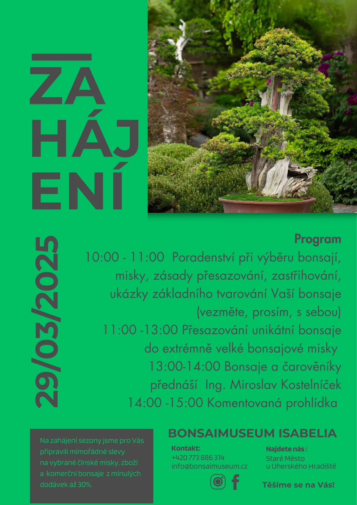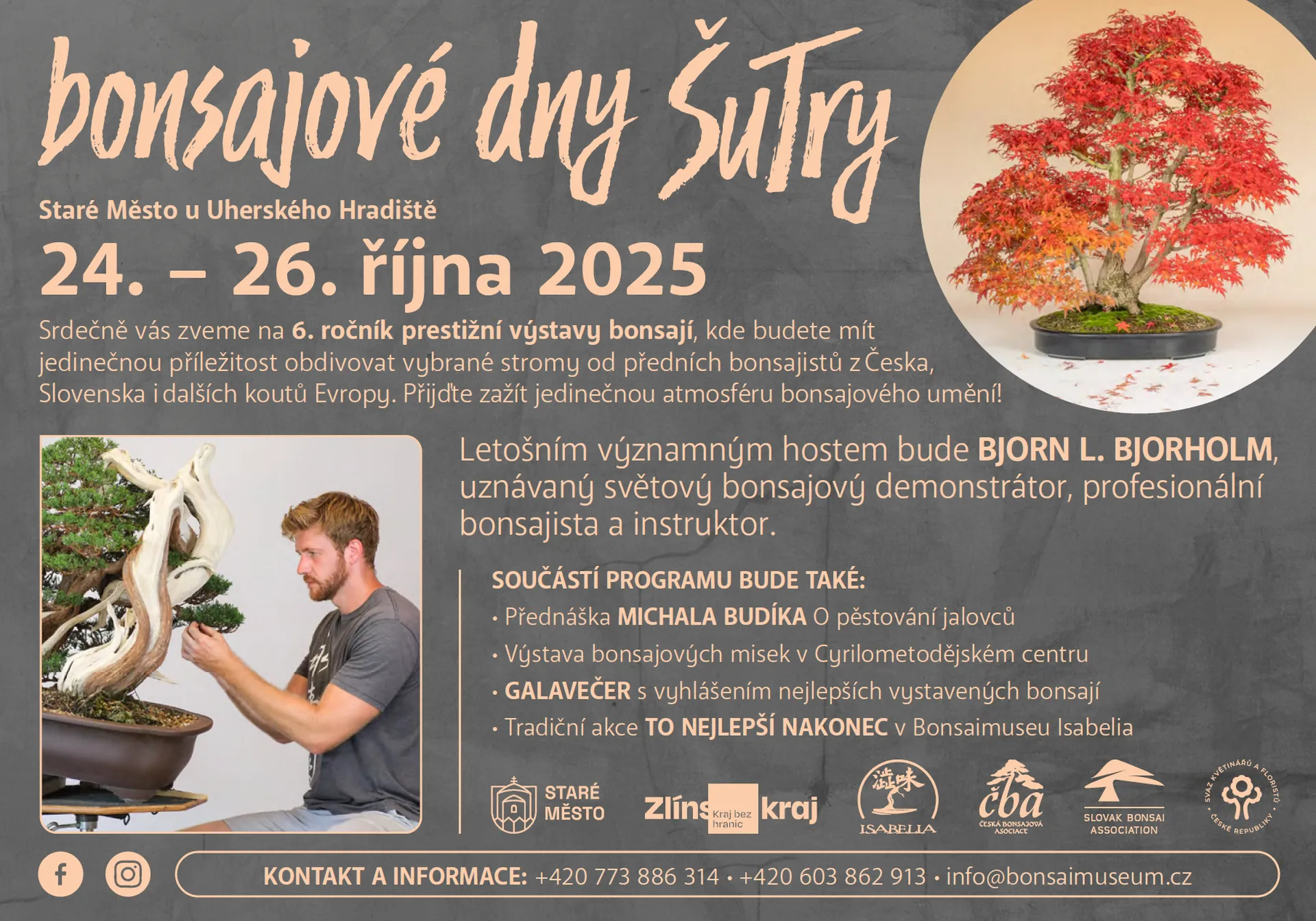 Srdečně vás zveme na 6. ročník prestižní výstavy bonsají, kde budete mít jedinečnou příležitost obdivovat vybrané stromy od předních bonsajistů z Česka, Slovenska i dalších koutů Evropy. Přijďte zažít jedinečnou atmosféru bonsajového umění!